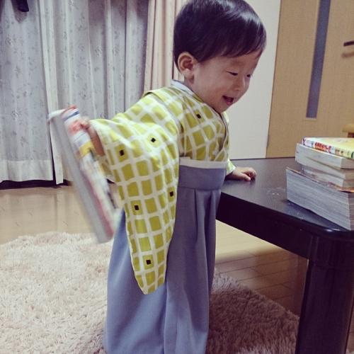山口県I.Y様ご注文商品(着物風カバーオール)≪モダンスクエア(マスタード)×グレー≫