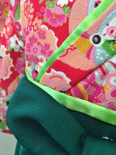 千葉県S.E様 ご注文品(着物風カバーオール)≪手鞠と小槌(赤)(ちりめん)×深緑≫
