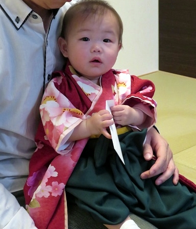 滋賀県S.M様 ご注文品(着物風カバーオール)≪八重桜(正絹生地・持込)×深緑≫