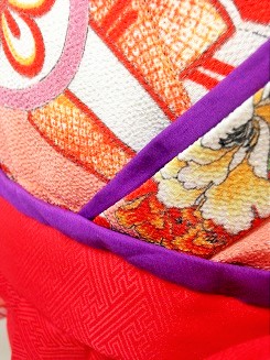 岐阜県S.S様ご注文品(着物風カバーオール)≪扇の舞(ピンク)・ちりめん×綸子・紗綾形(赤)≫