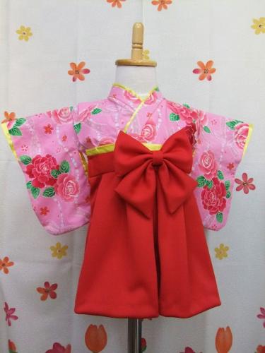 神奈川県Y.T様 ご注文品(着物風カバーオール)≪牡丹とリボン(ピンク)×朱≫