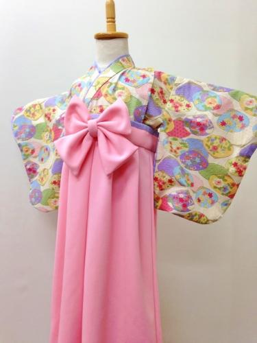 福岡県T.A様ご注文品(着物風カバーオール)≪桜と鞠(ピンク)×エンジ≫